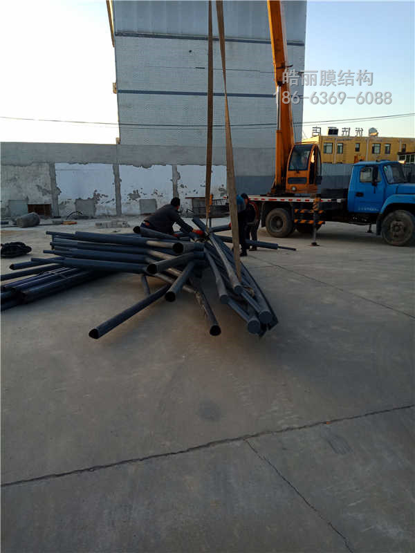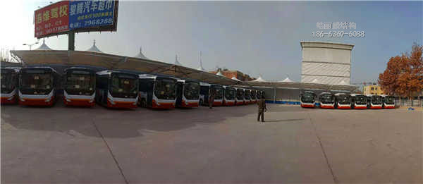 膜結(jié)構(gòu)充電樁,建設(shè)單位,保定市榮清國控集團(tuán)有限公司,地點(diǎn),交通運(yùn)輸管理站,本工程采用鋼材規(guī)121✘3.5行架立柱,114✘4 89✘3.5行架梁,膜布PVDF1100克刀掛工藝,膜布拉力5200牛,膜布特點(diǎn),拉力強(qiáng),耐候性自潔性高,持久耐用.